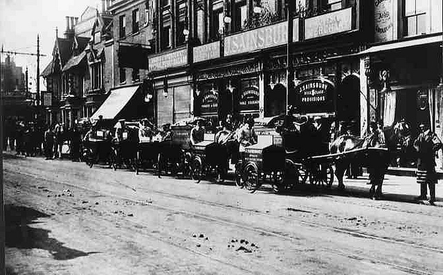 This was not the only way in which the store was important in Sainsbury’s history. It should be remembered that when John Sainsbury began to build his empire, grocery shopping was very different from the way it is today. Instead of picking up prepackaged food from a shelf, shoppers would queue up in different shops — and even at different counters within the same shop — for their goods to be weighed out and individually wrapped. This somewhat inefficient way of buying goods remained standard in the UK until the middle of the 20th century[14].
