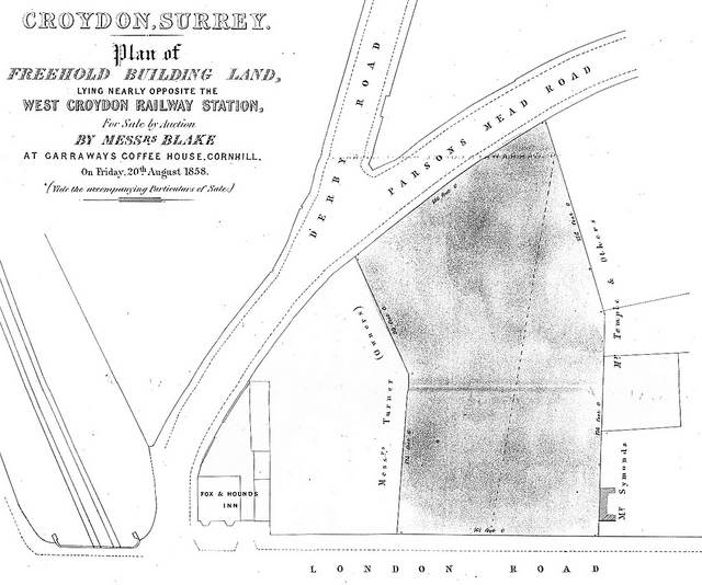 - The map actually only has initials, not full first names; see footnote [3] for where I got the full names from. The 1835 sales particulars are available bound in the Harold Williams volumes at the Croydon Local Studies Library, and also loose under reference BA268.