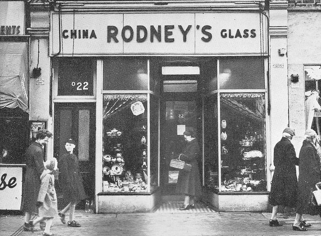 By the mid-1940s, the premises were home to Jack Rodney’s glass and china shop — and also to Jack Rodney himself, along with his wife Abigail and sons Harry and Alfred. The front part of the ground floor was occupied by the shop, with the back part a private family area; bedrooms and bathroom were on the first floor; and the second floor was used to store shop stock.[15]