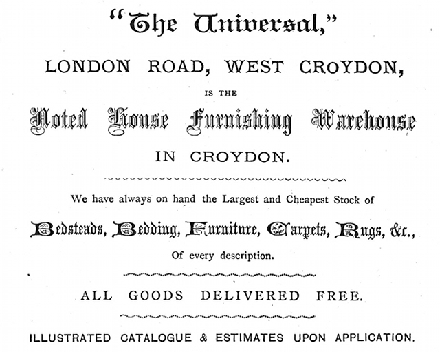 By 1880, however, Nathaniel Gifford had left London Road. His replacement at number 36 was The Universal, a furniture shop which also advertised itself as the “Universal Bedding Company” and “Universal Furnishing Company”. This remained in place until around 1885.[4]
