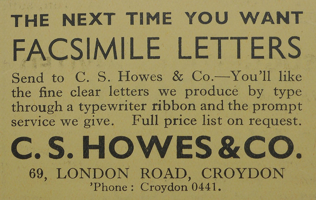 - Ward’s directories list Elite Advertising Services (along with Kaye’s gowns and coats) at number 69 in 1930; C S Howes & Co in 1932, 1934, and 1937 (along with Georgies, milliners, in 1934 and Excellent Dyers and Cleaners Ltd in 1937); and Uden, furrier, in 1939. See my article on 72 London Road for evidence as to Elite Advertising Services and C S Howes & Co being the same company, as well as more information on what happened to it after leaving London Road.