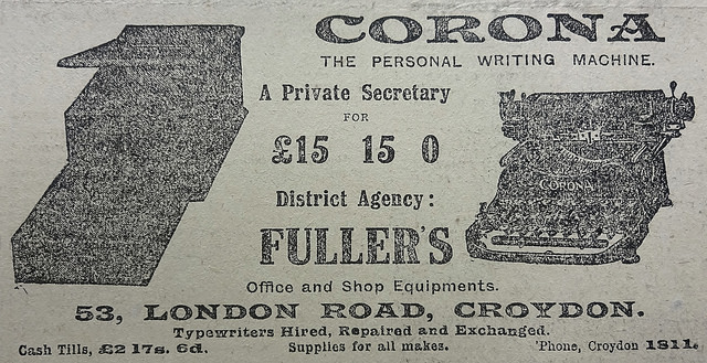 The shorter-term occupants included L & E Nichols, “Blouse Warehouse”; A Smith, confectioner; T C Goodman, stationer; Frederick White, confectioner and tobacconist; E Harley, stationer and fancy dealer; Mrs Swain, “Wardrobe Dealer” (probably referring to clothes rather than actual wardrobes); J J Stark, laundry; Lewis Mason, fancy goods and china stores; the Croydon Hosiery Co; M Albert, gent’s outfitter; F D Bailey, initially a gents’ outfitter but later switching track to a “registry office” (likely a type of job agency); G Grundy, estate agent; and The Gift Shop, fancy goods.[15]