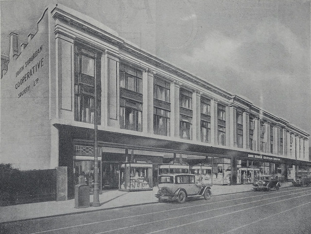 As of 1935, the South Suburban Co‑operative Society had 142,374 members and 67 branches, covering a territory of 400 square miles (over 1000 square km). Its annual sales were £3.2 million (£205 million in 2015 prices), and it paid out £225,540 (£14.5 million) per year in dividends. Its headquarters and flagship store provided a prominent landmark on London Road, the uniform frontage making a strong contrast to the rather more organically-shaped General Hospital opposite.[47]