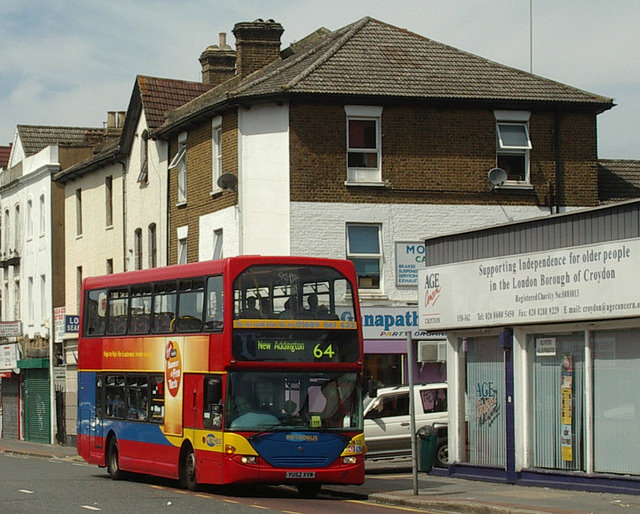 - Brian Simmons’ July 2006 photo of the 64 bus on London Road, a crop of which is reproduced here, shows a small slice of Ganapathy Textiles behind the bus. Less-obstructed images (albeit with the shutter down) from July 2008 are available via Google Street View (front window, side window). Details of shop stock and services are taken from the Ganapathy Textiles page on the biztha.com Tamil businesses directory, confirmed via the abovementioned Google Street View images.