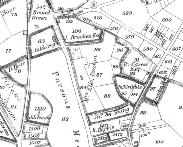 As shown on the map above, at the time of the Inclosure Award much of the land later known as the Broad Green Place estate was already in the possession of John Brookes. The Award Commissioners then sold or allocated John three adjoining plots which became part of the estate, increasing its size by more than three acres.[5]