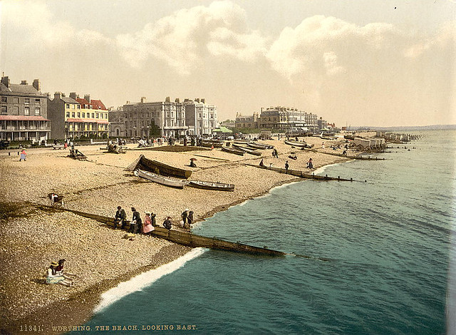 - The buildings in the background have changed substantially in the time since, but enough of them remain that a comparison with Google Street View suggests the image shows a view from the pier, with Steyne Gardens being the gap in the buildings towards the centre of the image.